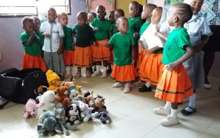 Mit wenigen englischen Worten erklärte ich die Aktion und packte die Kuscheltiere aus.