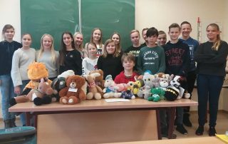 Mit der Tasche voller Plüschtiere, gesammelt von der Klasse 6.2 des Roman-Herzog-Gymnasiums, Schmölln,