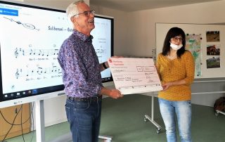 Am Ende unserer Besuches überreichte uns die Schulleiterin Frau Mayer dann einen Scheck in Höhe von 300€, den Kinder und Lehrer aus vielfältigen Aktionen heraus mit den entsprechenden Einnahmen unterlegt hatten.