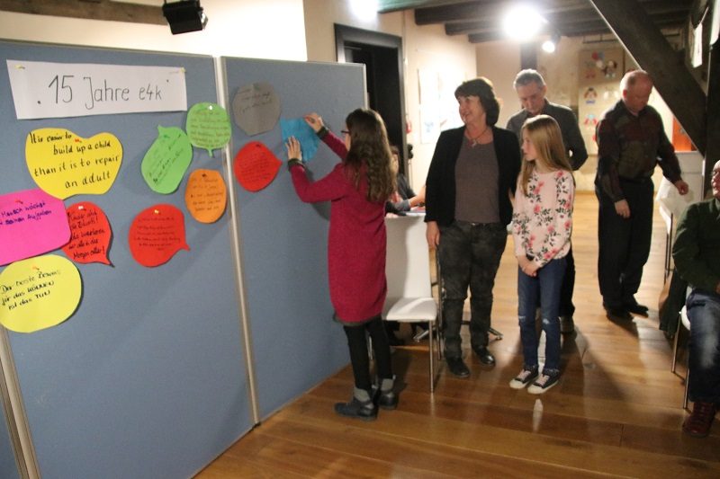 Der Vereinsvorsitzende, Gunter Nehrig, der im Anschluss das Wort ergriff, hielt nicht etwa einen Vortrag über Entwicklung des Vereins und die der Schule in den vergangenen Jahren. Nein, er rief die Anwesenden dazu auf, kurz niederzuschreiben was ihnen spontan einfällt und was sie bewegt bei dem Stichwort „15 Jahre – education4kenya“. Um doch ein wenig Bedenkzeit zu haben, wurde ein Video zur Entwicklung des Vereins gezeigt, gedreht und zusammengestellt vom stellvertretenden Vereinsvorsitzenden, Herrn Gert Müller, während des letzten Arbeitsbesuches im November 2018. Es war zum Teil auch sehr emotional, da ein Teil des Schuljahresabschlussfestes gezeigt wurde.
